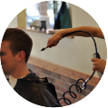 Enough with the itchy and scratchy haircuts! We use industrial air pressure/vacuum to make sure you don’t take home any more hair than you mean to.